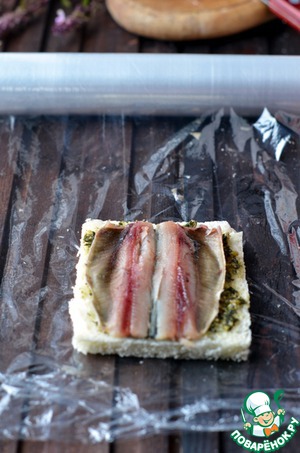С помощью пищевой пленки свернуть хлеб в роллы, "конфетки", хвостики завязать.