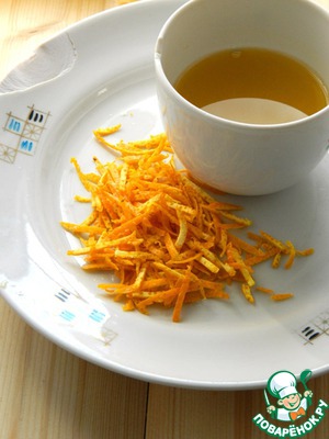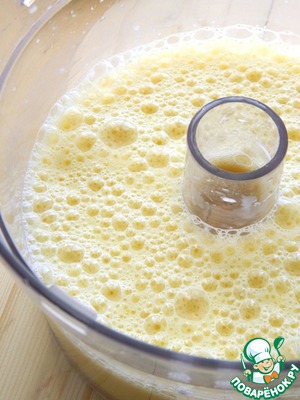 Творог, сахар, соль, апельсиновый сок перемешать с помощью блендера.