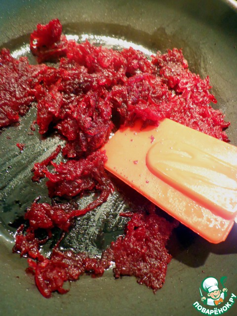 • Добавляем 2- 3 ст. ложки свеклы, перемешиваем.
