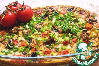 Времени на приготовление этого блюда уходит всего 10-15 минут, а в итоге получается нежная, воздушная омлетная пицца. Была мгновенно съедена мужем.