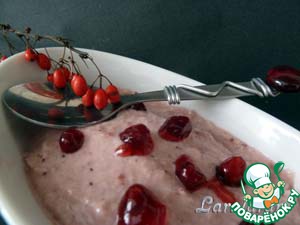 Готовила так: смешала заготовку из хрена со сметаной (брала крем-фреш, это жирная сметана - около 30% жирности) и добавила готовое клюквенное желе и немного лимонного сока. Естесственно - и сок и клюква по вкусу! -