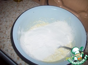 Добавляем соль, сахар, муку, замешиваем тесто, чтобы можно было сформировать валик, если муки недостаточно, всыпьте еще.