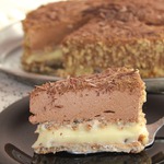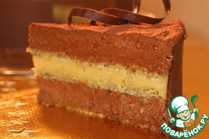 Накрыть пищевой плёнкой, поставить охладиться в холодильнике. На этой стадии охлаждённый торт можно заморозить в холодильной камере на несколько дней прямо в форме, но сверху накрыть его ещё слоем фольги и поместить весь торт в пищевой пакет или закрывающуюся ёмкость.