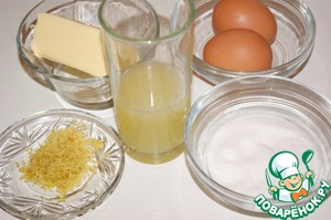 В кастрюльку с толстым дном поместить лимонный сок, цедру и сахар 60 г. Нагреть до кипения. Отобрать третью часть смеси. -