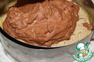 Ровным слоем выстелить на него половину шоколадного мусса.