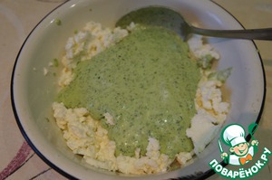 Добавить майонез, оставшуюся сметану и зеленый соус, все перемешать.