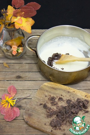 Шоколад порубить ножом. И маленькими порциями добавлять в еще не остывший крем.