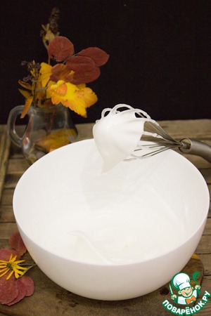 Взбить белки с сахарной пудрой до пиков.