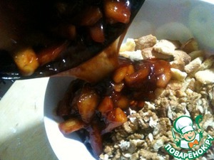 Остывшую яблочную массу смешать с орехами и печеньем.