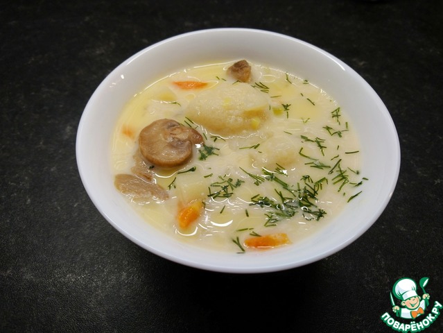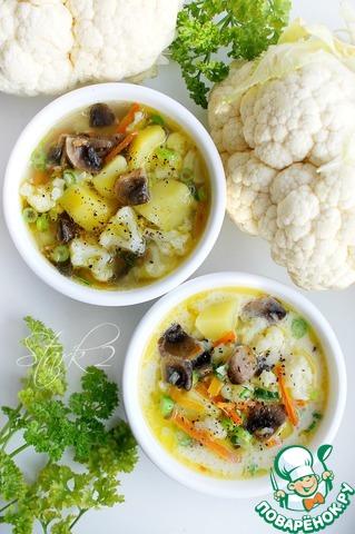 Рецепт «Суп сырный с цветной капустой и шампиньонами»:
