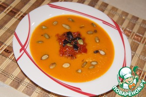 Оригинальный супчик для любителей тыквы и супов-пюре. Нежная консистенция и пикантный сладковатый гарнир. Очень необычно.