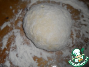 2. Берем 600 г сливочного масла и 750 г муки. Растираем. Формируем горку, в середину выливаем яично-уксусную смесь. Быстро замешиваем тесто, накрываем пленкой и отправляем минимум на 3 часа в холодильник