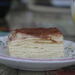 900 г муки · 1 л молока · 300 г сахара · 15 г ванильного сахара · 2 ст. ложки сахарной пудры · 6 яиц · 2 ч. ложки 5-процентного уксуса · 950 г сливочного масла · 0,5 ч. ложки соли.