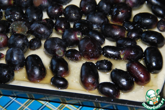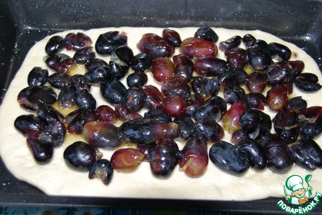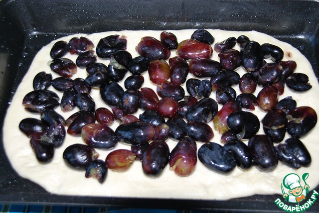 Половину винограда раздавить пальцами и уложить сверху теста.