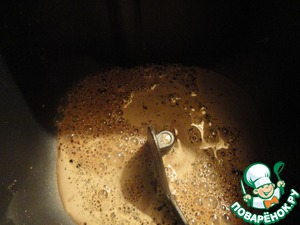 Добавляем муку и разрыхлитель теста. Ставим чашу в хлебопечь на программу выпечки из пресного теста.