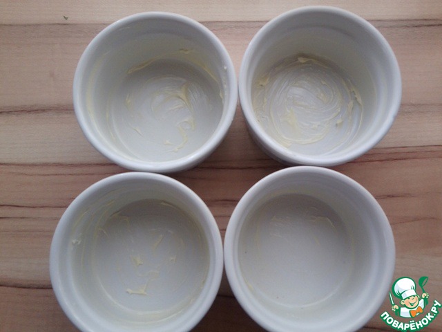 В смазанные сливочным маслом формочки для суфле вылить шоколадную массу.