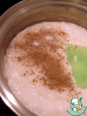 Добавить к рису кокосовое молоко, сахар, и корицу. Сахар можете регулировать по своему вкусу. Варить на маленьком огне под крышкой. Скорее даже не варить, а томить, пока всё молоко не впитается. Когда рис немного остынет, можно приниматься за лепку.