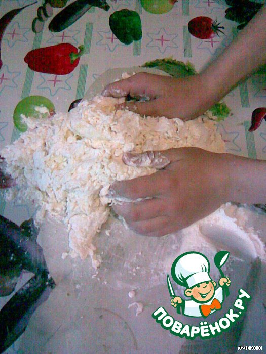 Добавить муку и вымесить тесто.
