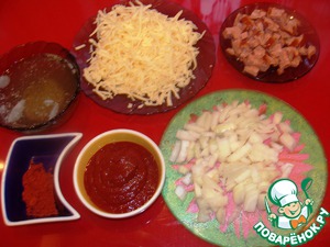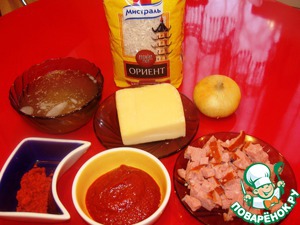 • Лук очистить, ветчину нарезать небольшими кусочками.