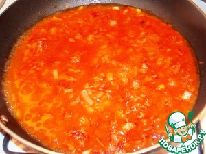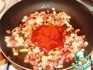 • Всыпать паприку и добавить томат, тщательно перемешать и держать на огне еще несколько минут.