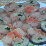 Заворачиваем рулет в пищевую пленку, утрамбовывая руками и выгоняя из пленки воздух. Каждую рыбку нужно завернуть отдельно. Складываем готовые свертки в морозилку. Через сутки рыба готова.