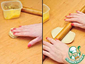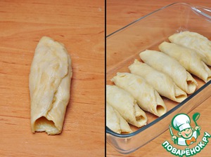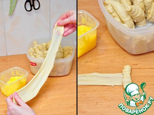 Затем положить ленту теста на смазанный маслом стол, и с одного конца скрутить в "кокон"