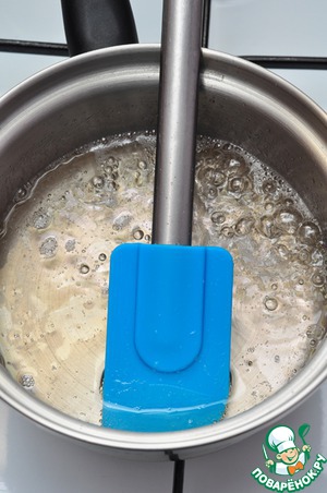 Для начала нужно сварить сироп. Его можно сварить с вечера, когда достанете тесто для разморозки, а можно сварить перед самым приготовлением лепёшек, но в любом случае сироп должен остыть. Он варится очень быстро, и также быстро остывает, если вынести на балкон и открыть окно.