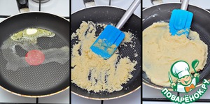 В сковороде растопить сливочное масло, добавить манную крупу, и обжарить её минут пять. Затем, добавить в сковороду молоко и сахар, перемешать, и как только манка начнёт густеть - перемешать и выключить огонь.