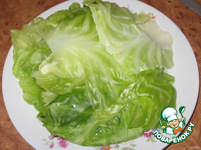 Капусту разбираем на отдельные листы, бланшируем в подсоленой воде 2-3 минуты.