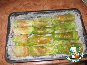 [+5]Готовила половину порции, запекала в формочке размером 20х12см, капустные листья готовила в микроволновке, что ускорило процесс, единственное - забыла укроп в тесто добавить.