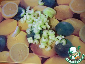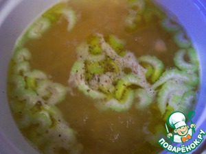 Черешок сельдерея нарезать ломтиками.