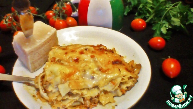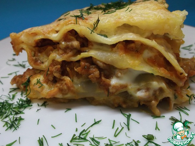 Рецепт у меня составной в ходе проб и ошибок. Если у лазаньи листья толстые, я их предварительно отвариваю.