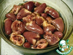 Сердечки промываем в проточной воде. Отрезаем торчащие сосудики и вообще всё лишнее, что не привлекательно. Поместить сердечки в ёмкость для маринования.