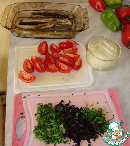 На этом фото уже запеченные баклажаны и все приготовленные ингредиенты.