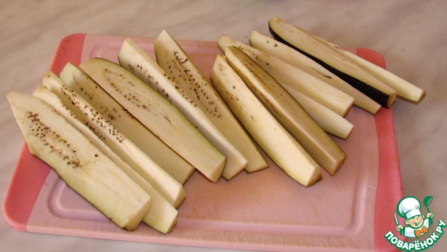 3. Бакланы порезать на четыре-шесть частей ( я никогда не замачиваю баклажаны, пропадает эта неповторимая горчинка, если вы считаете это неприемлемым - замочите в солёной воде на 10-15 минут).