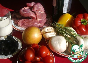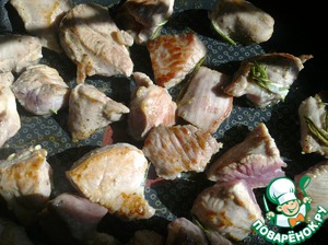 Мясо нарезать средними кусками, посолить и присыпать розмарином, оставить на несколько минут.