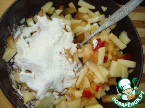 Пока рис варится, мелко нарежем фрукты и добавим сахарную пудру. Фрукты с пудрой хорошенько перемешать и дать настояться минут 10-15.