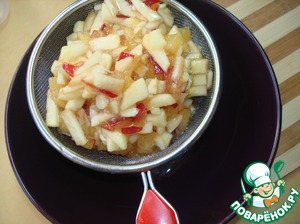 По истечении этого времени откинуть фрукты на сито и дать стечь выделившейся жидкости. Она нам понадобится.