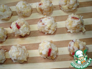 В рис добавить фрукты, перемешать. Сформировать порционные шарики.