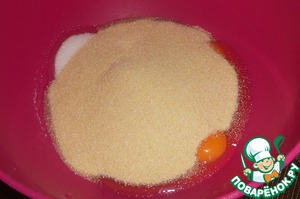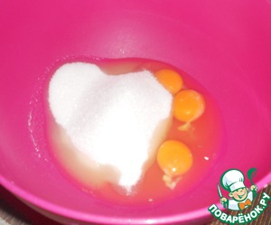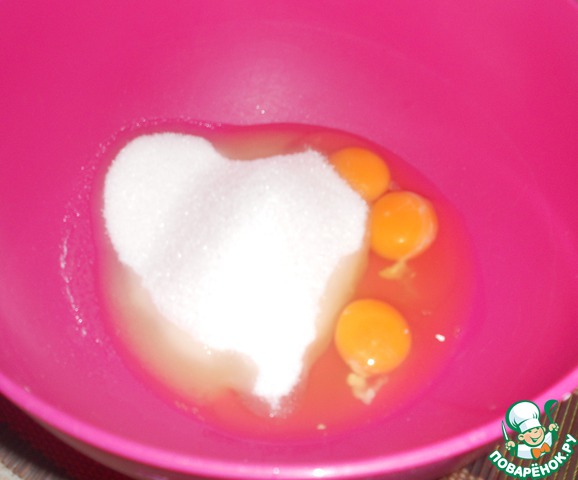 Смешиваем яйца и сахар.