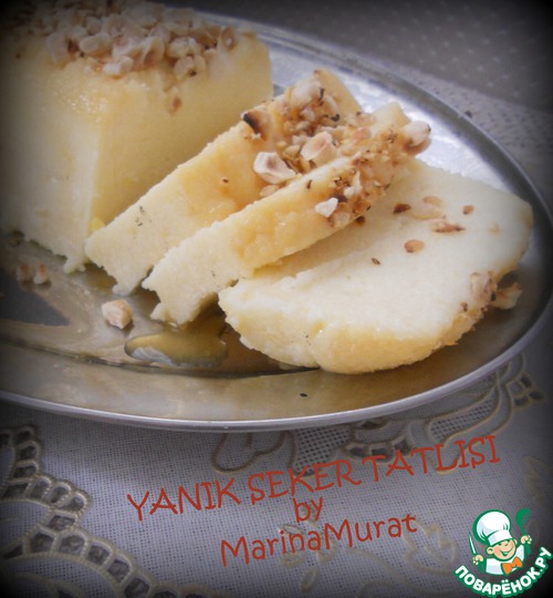 Янык шекер. Пока все варят манную кашу, турки из манки делают очень вкусные сладости: торты, пирожные, халву... Хочу познакомить вас с одним турецким десертом, очень практичный, доступный, вкусный. Прекрасно подходит для летней жары, так как очень освежающий, легкий, напоминает мороженое. Понравится и взрослым и детям...