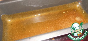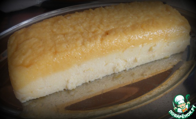 Манку накрываем, что б она не остыла. Теперь ставим на огонь сок с сахаром и варим до темного цвета и характерного запаха. Отсюда и название десерта- жженый сахар! Форму ничем не смазываем!!! Выливаем в нее жженый сахар, распределяем по всей форме и делаем "бортики".
