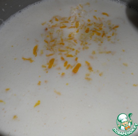 Когда молоко начнет закипать, добавляем цедру лимона. Я бы добавила еще больше цедры, от 3-4 лимонов. Очень вкусно! Поэтому, можете смело добавлять больше!