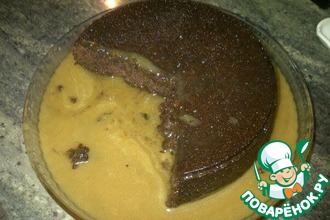 На жженый сахар выливаем тесто и распределяем равномерно по форме.