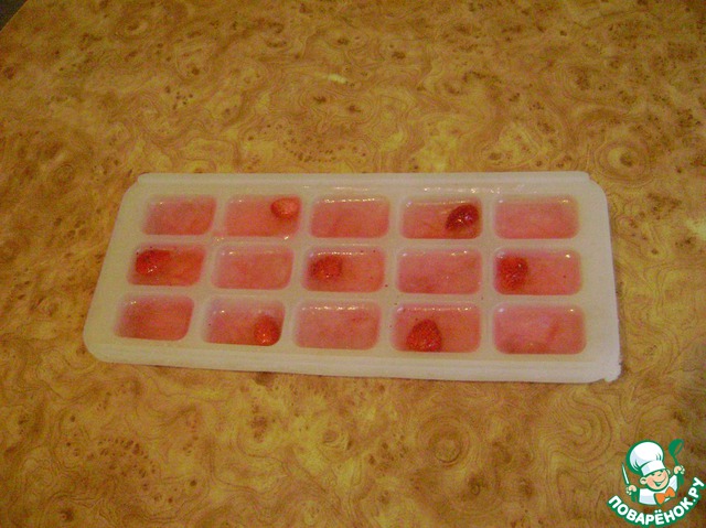 Аккуратно залейте ячейки морсом или разбавленным соком. Поставьте форму в морозильную камеру на несколько часов.
