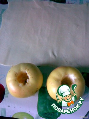тесто порезать на квадраты (чтобы можно было завернуть яблоко)