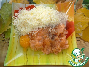 Добавляем к ней сухари, сыр, яйцо, соль, перец.