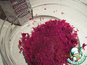 Готовую и остывшую свеклу натираем на мелкой терке.