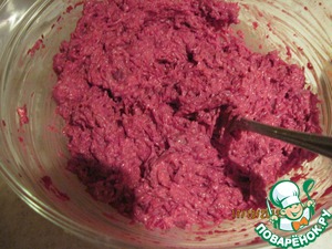 Заправляем свеклу сливочным сыром, перемешиваем.