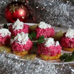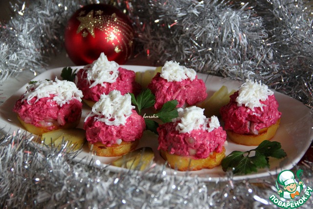 Здравствуйте, дорогие поварята! У нас за окном все холоднее, и дожди, легкие летние овощные салатики постепенно уступают место закускам посущественнее. Хочу поделиться с вами рецептом именно такой. На ломтике жареного картофеля - селедочка с лучком, а сверху нежная сливочная свеколка, очень вкусно! Закуска украсит стол как в будние дни, так и в праздник! Угощайтесь!